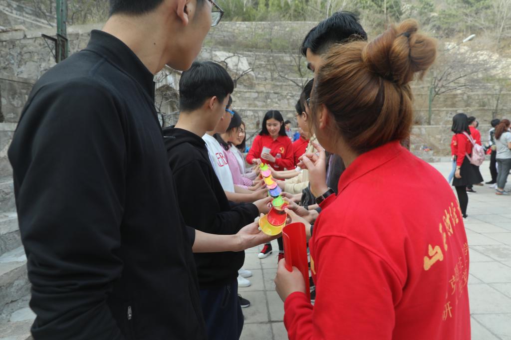 下午4点,两校学生共登二龙山开展素质拓展活动。珠行万里、五毛一块、热词匹配三个小游戏将整个学习活动推向高潮。在轻松欢乐的游戏中,增加了彼此间的友谊和信任,增强了团队的凝聚力与协调性;热词匹配更是让课堂所学深入头脑。