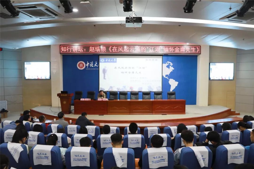 11月9日下午四点,由人文社会科学学院和体育学院共同主办的《在风起云涌的“江湖”缅怀金庸先生》知行讲坛在瑾瑜国际会议中心拉开了帷幕,山西大学文学院副院长赵瑞锁受邀担任主讲人,人文社会科学学院党委副书记王晓东主持本次活动。出席本次活动的嘉宾有大数据学院党委书记郭书杰、体育学院党委副书记贾鹏以及我院和体育学院辅导员。