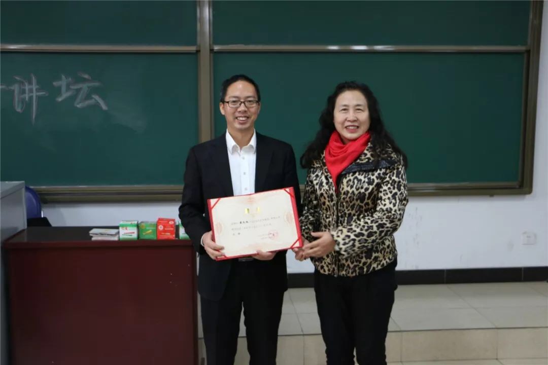 讲坛最后,党委书记雷丽蓉向黄文旭教授颁发聘书,并拍照留念。