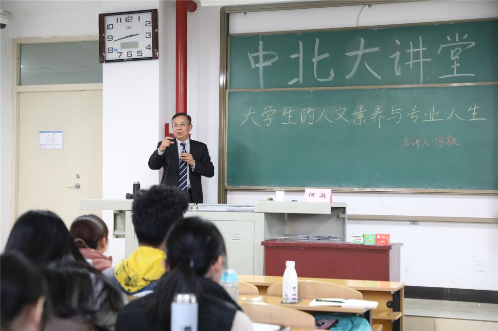 11月27日下午,由人文社会科学学院承办的我校第113期中北大讲堂在15106H教室成功举办,华东政法大学知识产权学院教授、博士生导师何敏受邀担任主讲人,他以《大学生的人文素养与专业人生》为题,给师生们带来了一场精彩的报告。人文社会科学学院党委书记雷丽蓉、副院长杜鹃、太原师范学院法律系教授李鹃、法学专业王改琴、张玮麟、张慧娟等老师出席了本次活动。法学专业药恩情副教授担任本次讲座主持人。