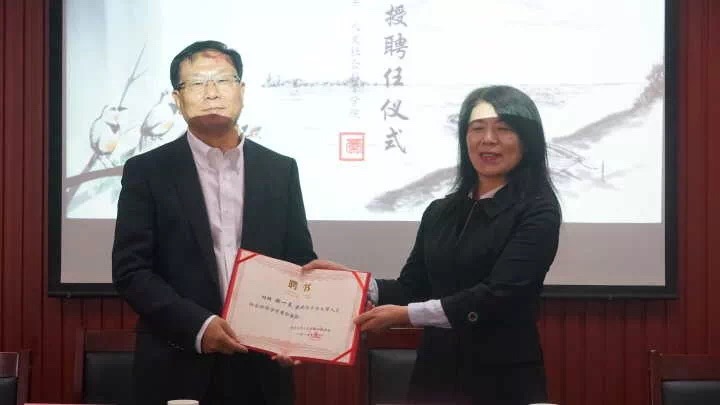 学术报告开始前,由任占文老师向同学们介绍参会领导及专家,由芮院长发表讲话介绍此次活动的目的以及表达对郝教授的感谢。讲话结束后,由芮院长向向郝一民教授颁发聘书。
