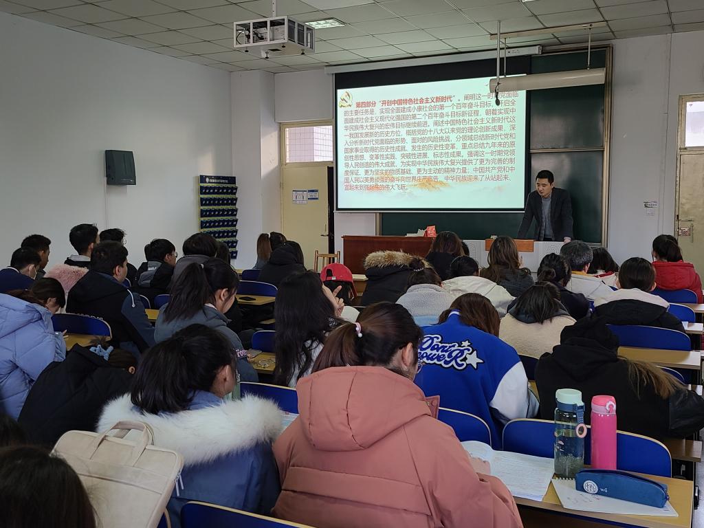 党的十九届六中全会是在重要历史关头召开的一次具有重大历史意义的会议。全会审议通过的《中共中央关于党的百年奋斗重大成就和历史经验的决议》是一篇马克思主义纲领性文献;是新时代中国共产党人牢记初心使命、坚持和发展中国特色社会主义的政治宣言;是以史为鉴、开创未来,实现中华民族伟大复兴的行动指南;对于推动全党统一思想、统一意志、统一行动,团结带领全国各族人民在新时代更好坚持和发展中国特色社会主义,必将产生重大而深远的影响。加俊老师从深刻把握召开党的十九届六中全会、作出新的历史《决议》的重大意义,深刻把握党百年奋斗的初心使命和重大成就,深刻把握中国特色社会主义新时代的历史性成就和历史性变革,深刻把握党百年奋斗的历史意义和历史经验、从党的百年奋斗历程中汲取智慧和力量等方面为同学们进行了系统阐述和解读。
