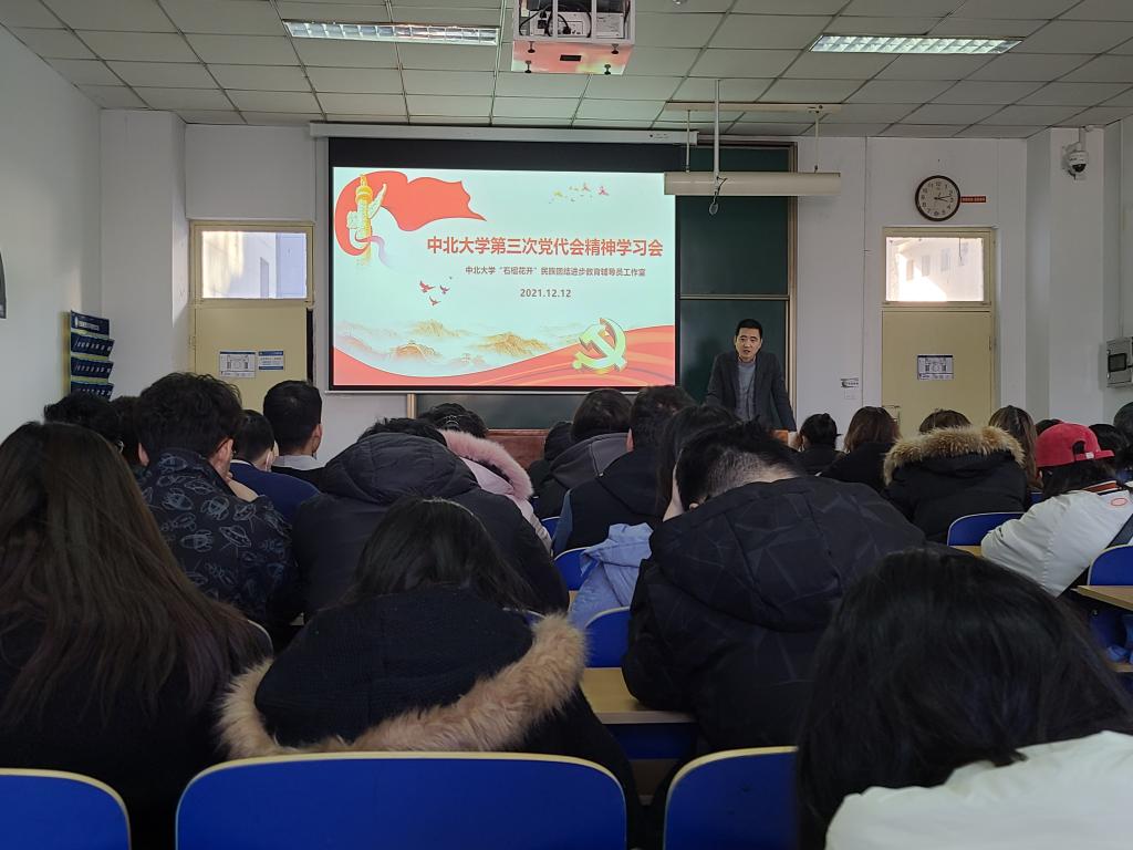 中国共产党中北大学第三次代表大会,是在中国特色社会主义进入新时代、党和国家开启全面建设社会主义现代化国家新征程、向第二个百年奋斗目标继续进军、学校事业发展进入新阶段的关键历史节点召开的一次十分重要的大会。大会总结了学校过去五年来所取得的成绩,分析了学校面临的发展形势,提出了未来五年和今后一段时期的发展战略和思路,确立了学校创建“双一流”大学的奋斗目标,为学校发展绘就宏伟蓝图。加俊老师从“第二次党代会以来的工作”、“新时期的历史使命与办学思路”、“全面开启新征程的主要任务”、“扎实推进党的建设新的伟大工程”四个方面领学了中北大学第三次党代会精神。