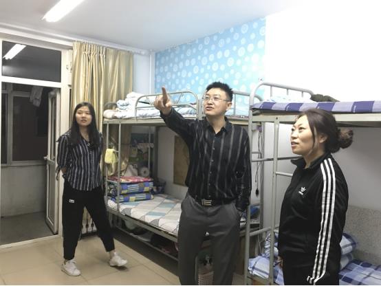在学生寝室里,王副书记和刘老师与学生亲切交谈,询问同学们是否住得习惯,了解同学们来校后遇到的各种困难并一一耐心解答。随后,王副书记还对同学们提出了以下几点要求:要搞好宿舍文化建设,共同维护好学习生活环境卫生;要加强宿舍安全管理,增强安全防范意识,确保宿舍安全工作做到位;要进一步提高节约用水用电意识;要努力加强科学研究。