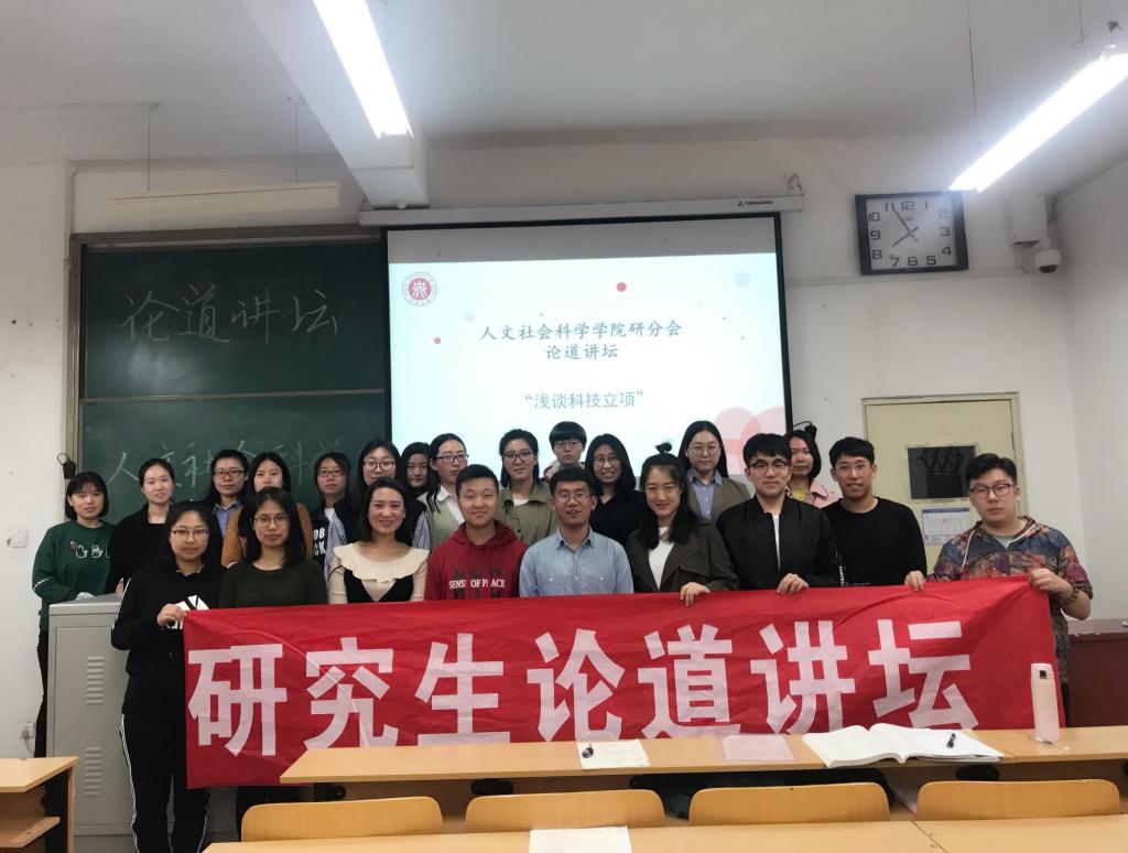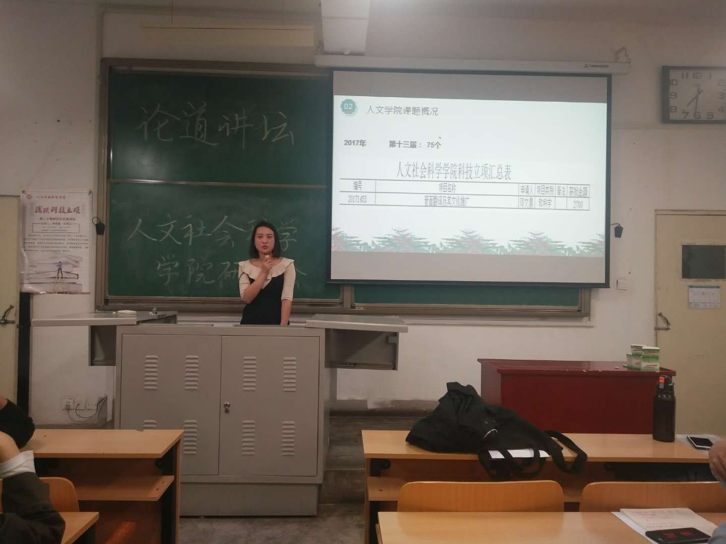 2018年4月13日19时,人文社会科学学院研究生分会在13203H举办了以“浅谈科技立项”为主题的论道讲坛,本次讲坛的主讲嘉宾分别是李明鑫和任桐玉两位研究生代表。