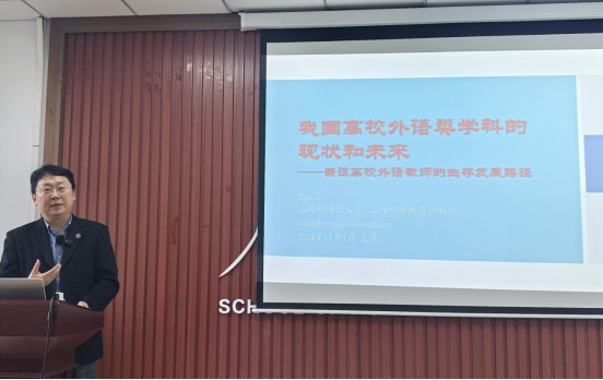 张教授以“我国高校外语类学科的现状和未来兼谈外语教师的生存发展路径”为题,深入分析了国内高校外语类学科的现状,为外语教育领域的发展带来了新的思考与启示。