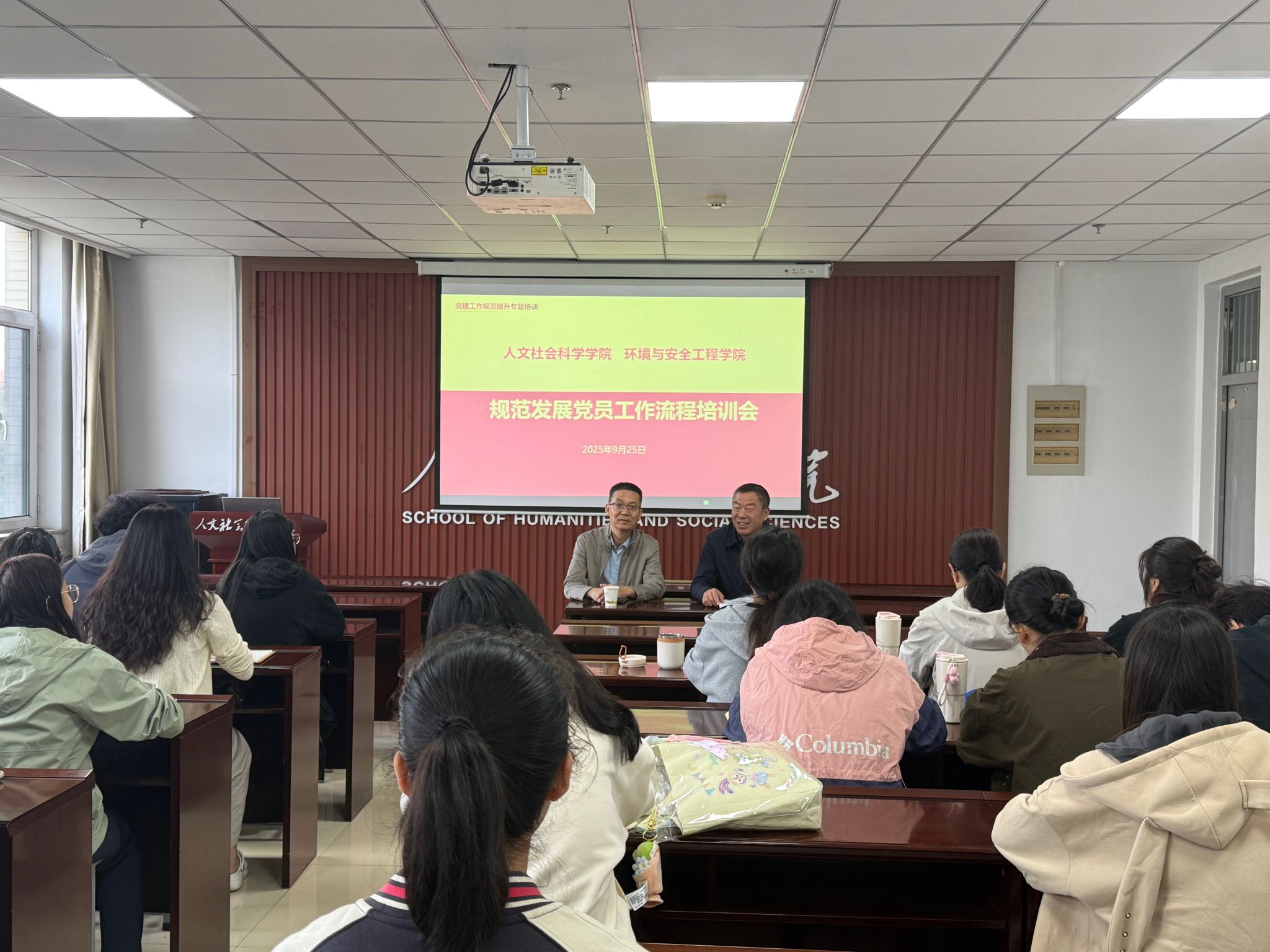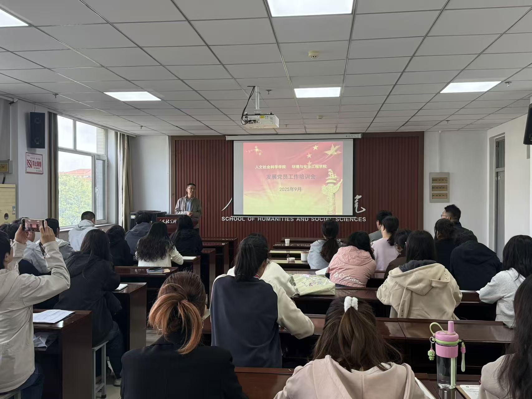 为严格落实新时代党的建设总要求,进一步规范发展党员工作程序、提升工作质量,9月25日上午,人文社会科学学院与环境与安全工程学院共同举办规范发展党员工作流程专题培训会。人文社会科学学院党委书记孙俊伟、环境与安全工程学院党委书记王振荣、组织员以及各学生党支部书记、支部委员等参加了会议。