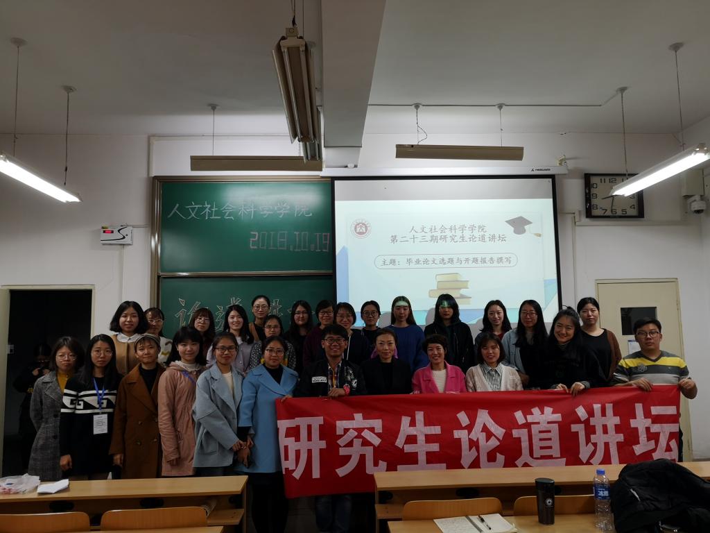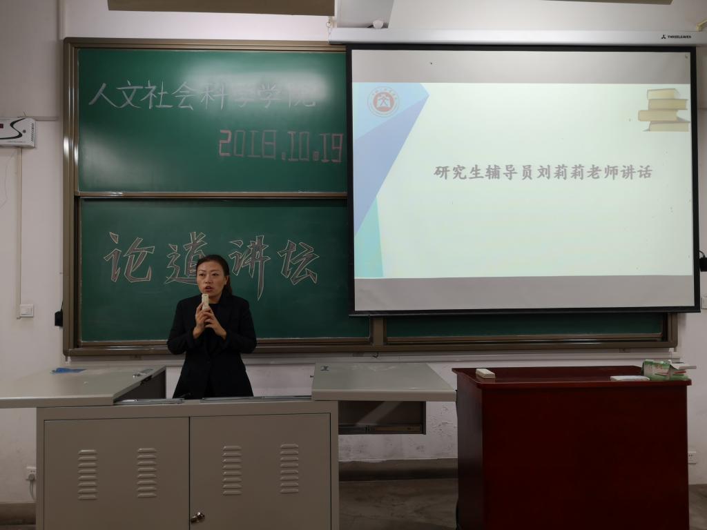 2018年10月19日,人文社会科学学院在13303教室成功举办了以“毕业论文选题与开题报告撰写”为主题的论道讲坛。本次论道讲坛主讲嘉宾是人文社会科学学院曹妍副教授,研究生辅导员刘莉莉老师主持了此次活动。