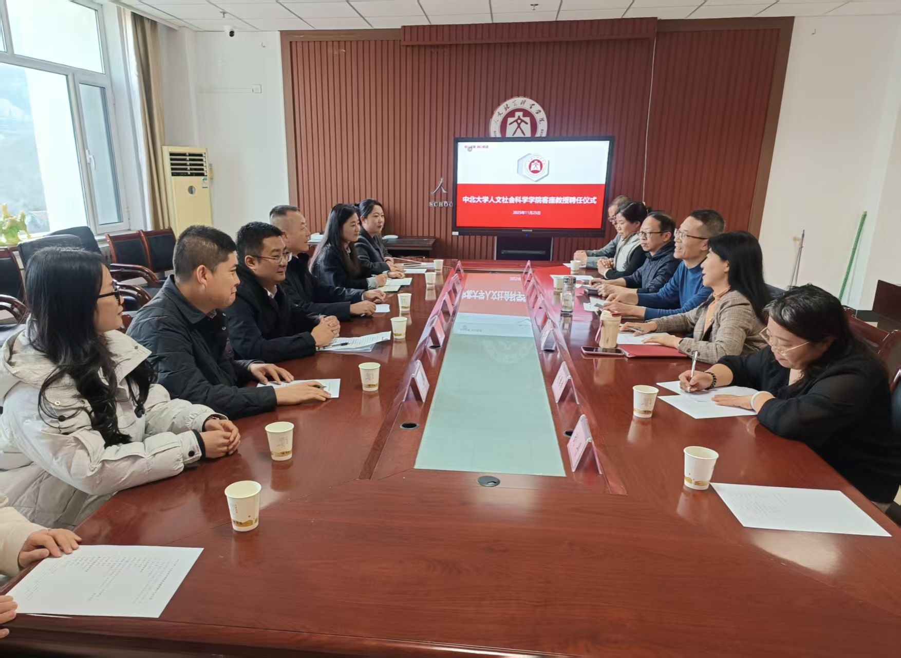 为进一步提升人文社会科学学院和中北大学数字纪检监察研究院办学影响力,增强中北大学法治服务双创平台与法律服务协会实践学习资源,拓宽育人路径,2025年11月25日下午,人文社会科学学院在615会议室举行客座教授聘任仪式。此次聘任聚焦数字纪检监察研究院人才需求与专业适配性,特邀纪检监察领域实战精英担任客座教授,以强化学科交叉融合、推动纪检监察学科建设与人才培养。仪式由学院党委书记孙俊伟主持,院长芮燕萍、副院长廖高会,数字纪检监察研究院常务副院长孟晓伟及相关教师代表出席。