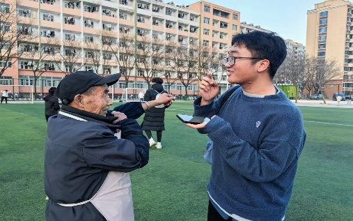 核心倾听环节中,志愿者们始终以老人为中心,不预设过多问题,让老人自由倾诉过往岁月、生活点滴。有人回忆年轻时的工作经历,眼角泛起笑意;有人说起对子女的思念,声音带着哽咽。记录者认真记下老人的心愿、遗憾与情感需求,主倾听者则适时回应引导,比如一句“这件事一定让您印象很深吧”,让老人感受到被理解、被重视。当老人提出想学用手机视频通话的心愿时,志愿者立刻拿出手机,耐心地一步步教学,老人跟着操作的模样,成为校园操场里温馨的一幕。在社区步道、校园运动场等不同场景,志愿者们或站或蹲,与老人亲切交流, 结束时有的老人还语重心长的对志愿者们说要注意健康饮食,少喝饮料等,殷殷关切 如同对待自己的小辈。