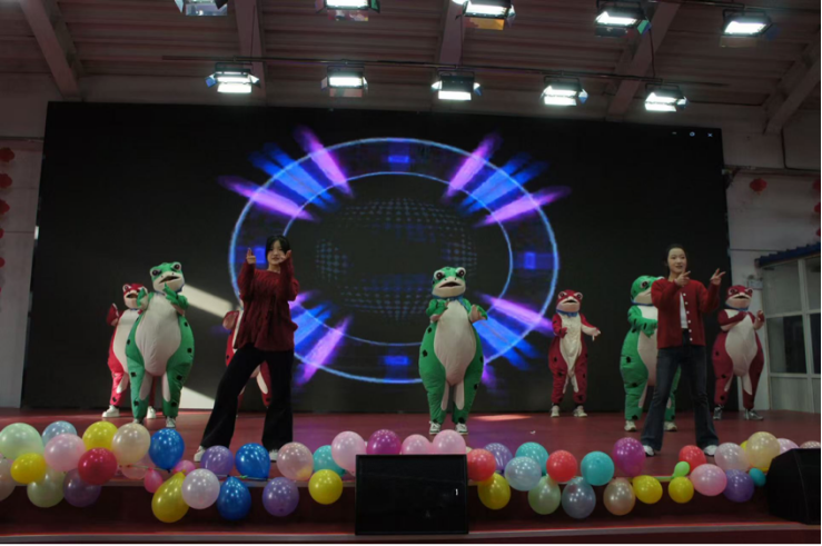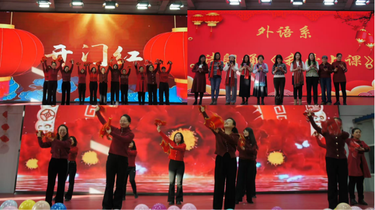 致辞结束后,精彩节目轮番登场:学院领导的三句半诙谐接地气,学生骨干的舞蹈串烧青春昂扬;《开门红》舞姿喜庆、《红日映珊瑚,马舞新时代》动感十足,外语系老师们带来的诗朗诵《我爱上课》尽显教育热忱;通新粉合唱团的经典曲目则满含温情,勾起共同回忆;解凤灵、张彬彬老师即兴演唱的《莫斯科郊外的晚上》悠扬动人。节目形式丰富、亮点纷呈。