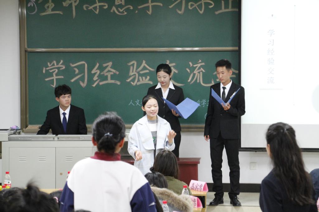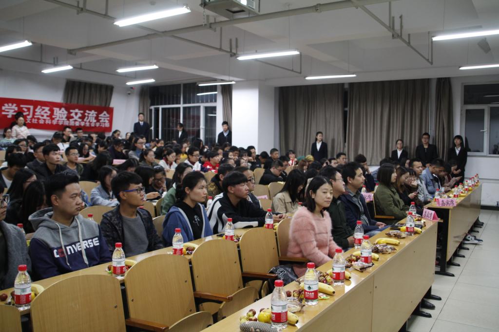 10月14日晚7点人文社会科学学院在15109教室举办了学习经验交流会。院党委副书记王晓东老师、团委书记加俊老师、学生科李娜老师及院团委院学生会主席团及各部部长、新生班班主任助理及兄弟学院学生干部参加了交流会。150余名大一新生聆听了学习经验交流会。