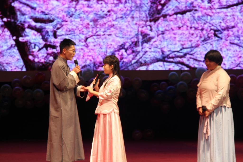 校团委书记李俊华老师在掌声中上台致辞。李书记对大一的新同学加入人文大家庭表示热烈的欢迎;对新生的多才多艺表示赞赏和充分肯定;祝愿大一新生在人文学院努力奋斗,用青春谱写人文学院新华章。