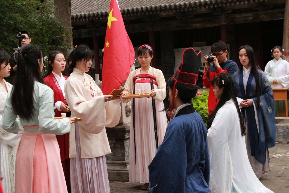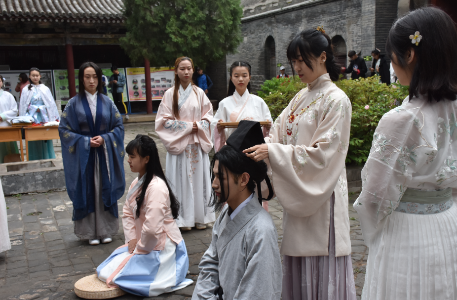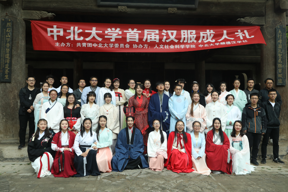 2018年4月22日上午,由中北大学校团委主办、人文社会科学学院团委和中北大学麟德汉学社承办的汉服成人礼传统文化活动在窦大夫祠举行。