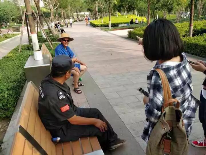 实践团成员前往和平公园时正处于人员最多的时刻,几日的大雨过后居民纷纷出来锻炼身体、呼吸新鲜空气。有居民在跑道上跑步、散步,也有居民在长椅上看报纸、聊天、休息,还有居民在小广场跳舞......这些情景反映了太原市和谐的氛围。但是实践团也在其中了解到一些不文明的情况,比如脱鞋占用公共座椅。因此,实践团发现和平公园的管理也十分的严格,有专门的保安进行巡视来监督居民的不文明行为,以及时阻止居民的不文明行为。