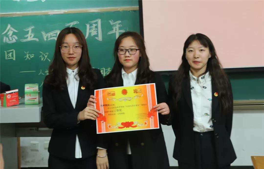 比赛最后,院学生会主席王宇为我们总结致辞,他表示各位参赛人员优秀的答题情况,也让他增长了知识,同时也看到了青年一代的担当,希望各团支部成员再接再厉。最后主持人公布比赛结果,获得一等奖的是18100141团支部,二等奖是17100642团支部,三等奖是18100343团支部。