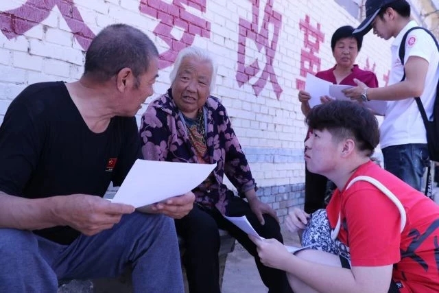2019年7月8日南堡村暑期社会实践团队经过上一天的调查与收集资料以及晚上修整会议,于早上7:00从住宿处出发,坐上开往目的地的乡村公交。经过2个多小时的颠簸到达南堡村。当团队到达时,恰逢几位大爷大妈坐在村口看着地里的庄稼发愁,看到此种情况,队员立马投入行动,于是打响了团队的第一枪:问卷调查,并访问村民。