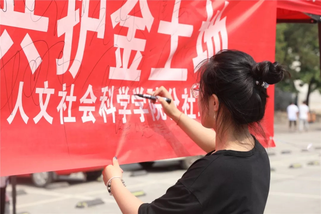 活动现场,通过以“手牵手同保生命线 心连心共护金土地”为主题发放宣传手册,赠送小礼品宣传“全国土地日”相关知识,以及用留言签名的方式,让全体师生更好地认识到土地对于国家的重要性。