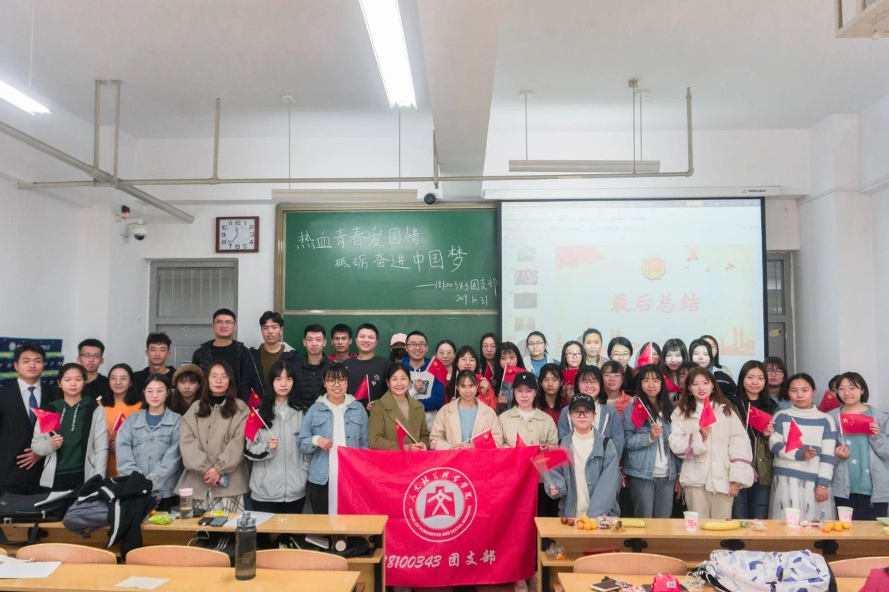 习近平总书记指出,“青年是整个社会力量中最积极、最有生气的力量,国家的希望在青年,民族的未来在青年”。鸿雁于飞正好,青春追梦不息。2019你我恰青春年少,新中国七十华诞风华正茂。在此次团日活动上,18100343团支部及在场嘉宾携手以青春之芳华告白祖国,以青春之活力唱响心中赞歌。同时,经过此次活动,全体18100343团支部团员牢记习近平总书记的殷切嘱咐,抓住时代机遇,树立远大志向,时刻保持昂扬斗志,在实践中淬炼品格、增长本领,积极投身到实现中华民族伟大复兴的伟大征程中去,做新时代的青年追梦人。