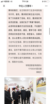 2020年两会召开前夕,在决胜全面建成小康社会,决战脱贫攻坚的关键时刻,习总书记来到山西进行考察,这是对山西近年来各项工作的充分肯定。共青团是党的助手和后备军,作为新时期的山西学子,作为先进团员青年,我们更应该以此为契机,大力弘扬以改革创新为核心的时代精神,勇于担当历史责任,在奋进中焕发青春光彩。团旗所向,党旗所指,我们要努力学习,积极创新,用理