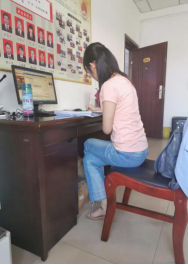 她在村扶贫干部的帮助下挨家走访村中的扶贫对象,并做好记录,了解目前精准扶贫具体情况,并根据现有情况向村扶贫干部提出建议。并利用专业优势,积极宣传法律援助,尽自己绵薄之力为村民提供法律帮助。