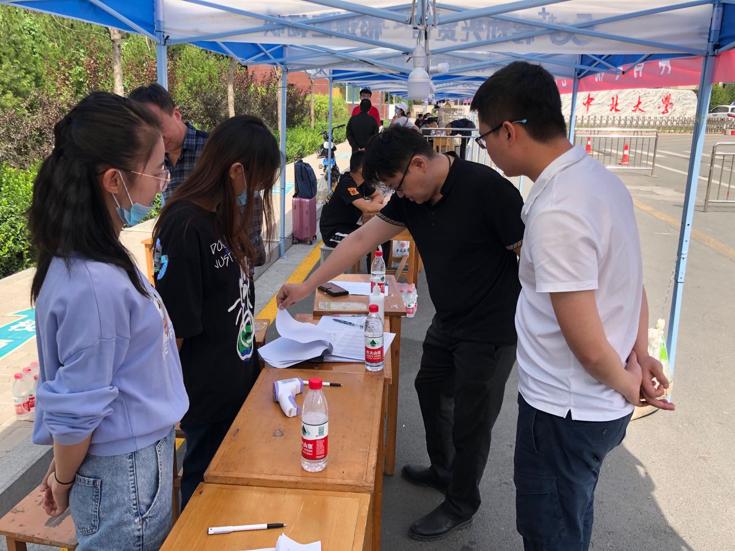 因为疫情影响,学校仍然实行封闭管理模式,学生在入校前需要办理相关手续、核验体温。在校、院领导的指导及率领下,全体辅导员、班主任和部分学生干部坚守岗位,认真的查验同学证件,登记学生信息,办理入校手续。