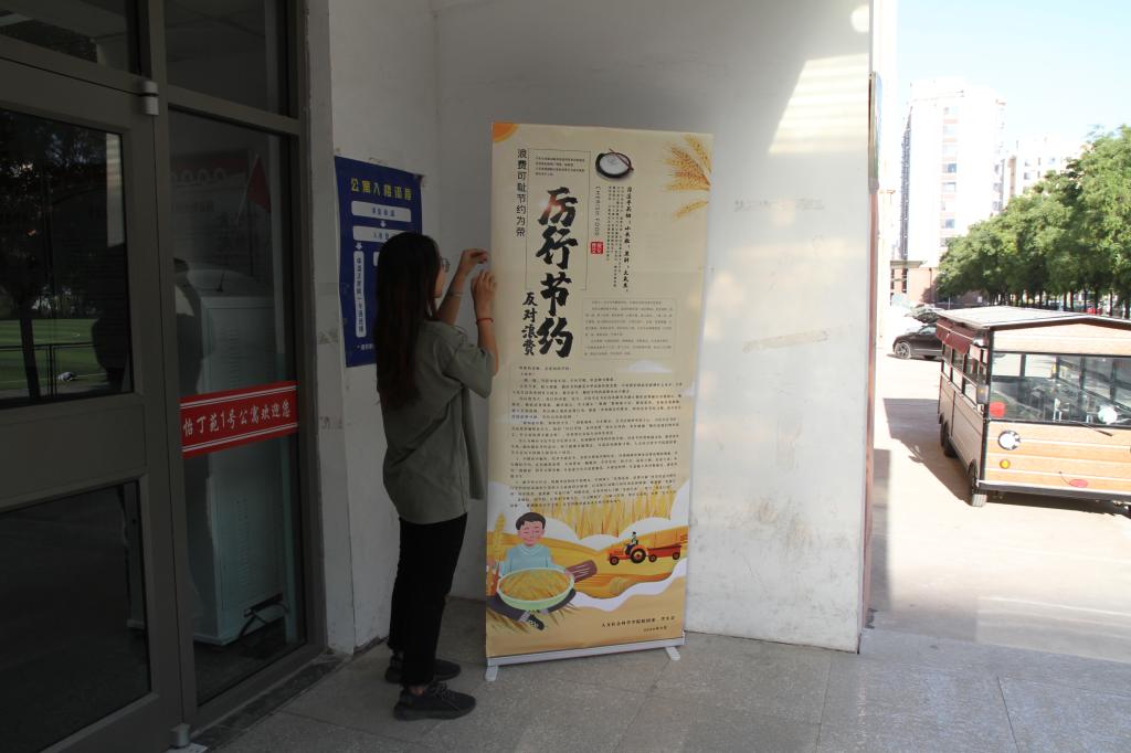 二是全面宣传,营造节俭风气。在学生中通过主题班会、团日活动等形式学习总书记对制止餐饮浪费行为作出的重要指示精神。设计制作了宣传海报,张贴在学院楼、学生宿舍楼等人流量密集的场所,呼吁同学们理性消费,节俭用餐。
