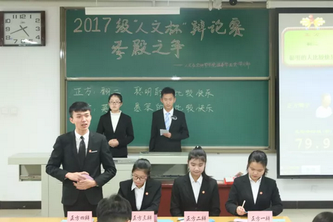 12月8日下午4点,2017级“人文杯”辩论赛之季殿赛在15102教室举办。本场比赛邀请往届人文杯、春华杯优秀辩手作为评委。翻译二班为正方,辩题为聪明的人比较快乐,英语一班为反方,辩题为愚笨的人比较快乐。