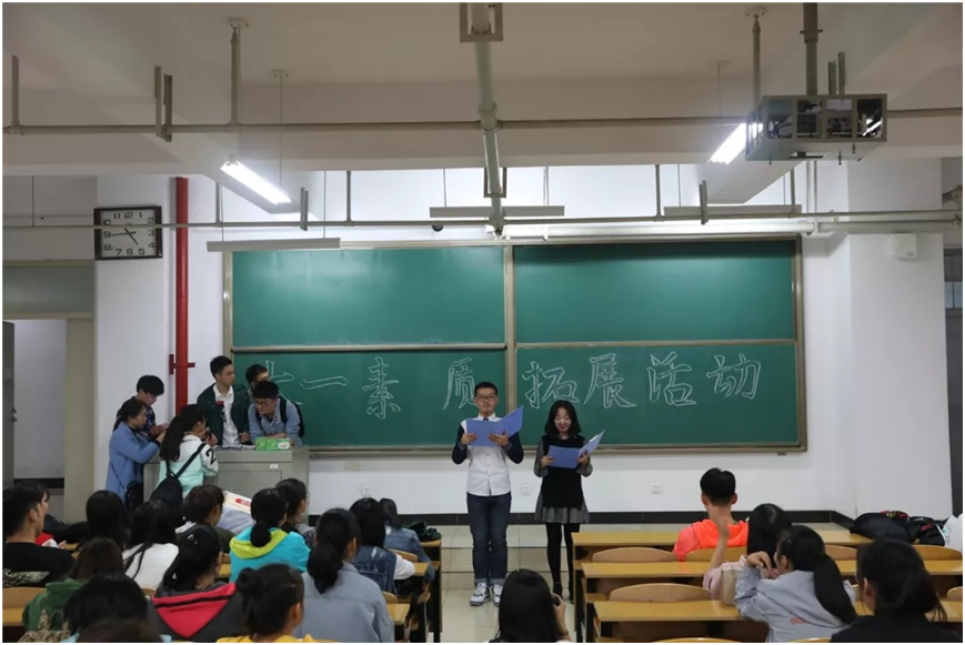 为促进新生之间相互了解、相互熟悉,增强他们的凝聚力,丰富学习生活。9月18日下午,由我院团委和学生会共同主办,文艺部、体育部、心理站共同承办的新生素质拓展大赛在15306H如期举行。我院党委副书记王晓东老师、学生科科长李娜老师、团委书记加俊老师出席本次活动,80多名新生参与此次素质拓展大赛。