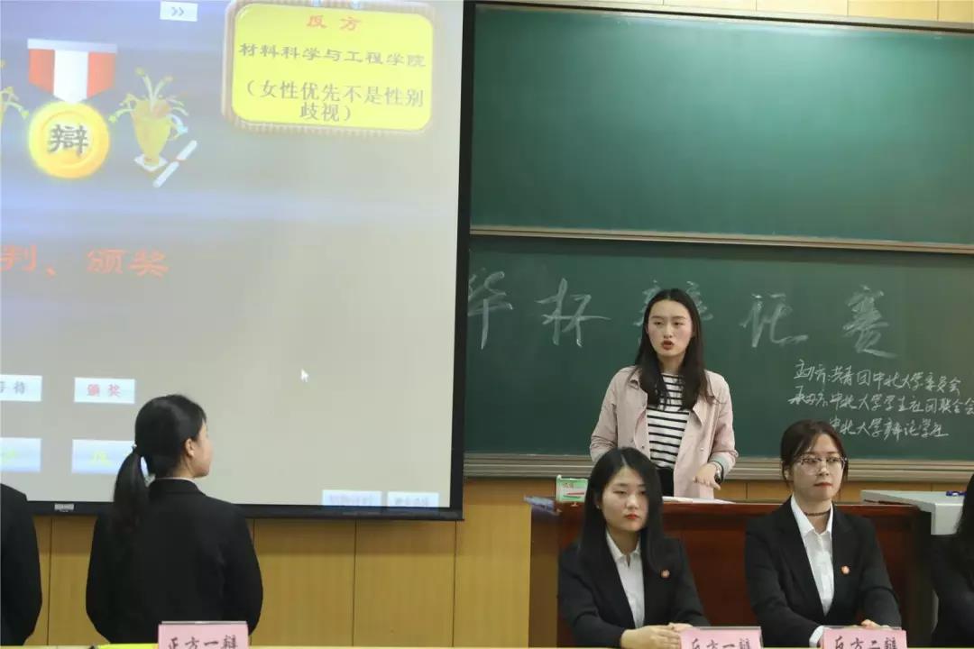 四月十五日下午三点整,中北大学“春华杯”辩论赛第一场在11309教室成功举办。正方是人文社会科学学院代表队,辩题为女性优先是性别歧视;反方是材料科学与工程学院代表队,辩题为女性优先不是性别歧视。双方辩手摩拳擦掌,比赛一触即发。