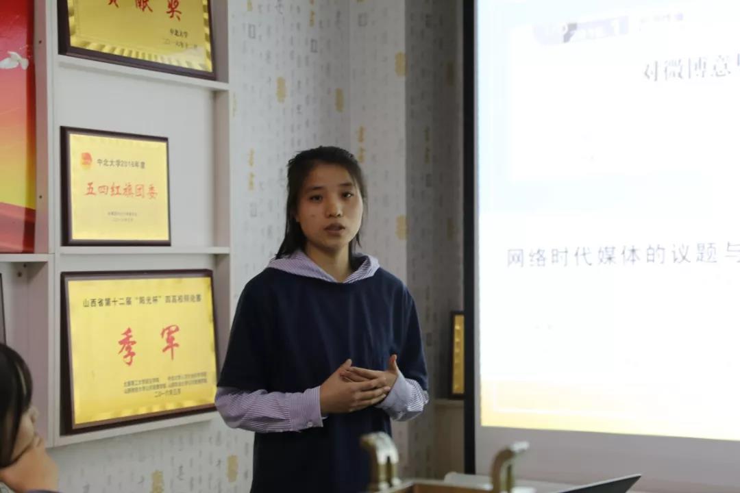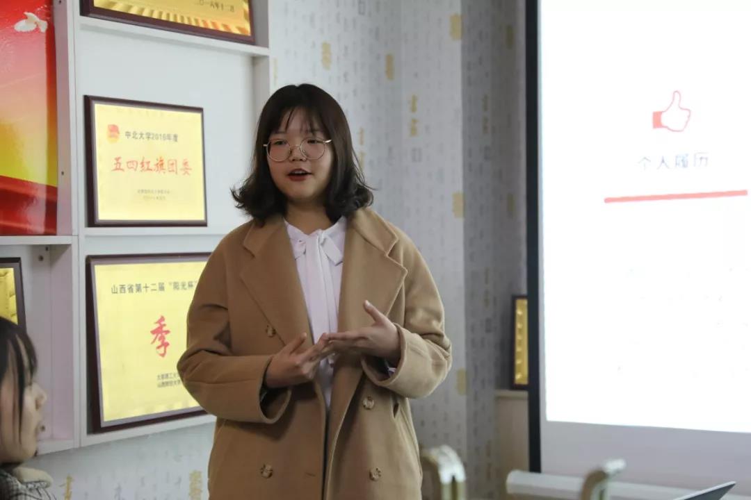 赵婧以“定义我的中北,让你更加爱上中北”为主题进行答辩。赵婧同学是中共党员,人文社会科学学院广播电视学专业2015级15100542班学生。绩点3.77分, 综合绩点4.07,在专业95名同学中排名第二,现已推免至大连理工大学攻读新闻与传播硕土。曾任“温度传媒”负责人、中北大学电视台记者。参与第四届山西省“互联网+”大学生创业总次赛,作为项目负责人带领团队获得省级二等奖。曾获校级优秀团干、优秀团员、综合素质奖学金、五四新闻奖二等奖等校级奖项。在灵石电视台、山西新闻网实习。