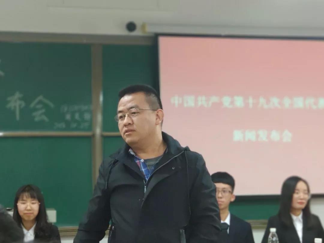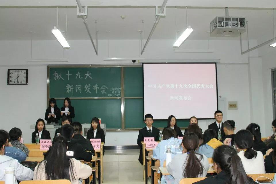 为全方位了解“十九大”内容,深入贯彻“十九大”精神,近日,中北大学人文社会科学学院18100343班举办了以“逐梦十九年华,青春建功十九大”为主题的班会。本次班会由18100343班的同学模拟新闻发言人召开“18100343班模拟十九大新闻发布会”,参与此次活动的嘉宾有人文社会科学学院广播电视学专业老师任占文,班主任郭玲霞,导员张磊,新闻社摄影总监孙嘉翊,中北大学摄影协会副会长师晓宇等。