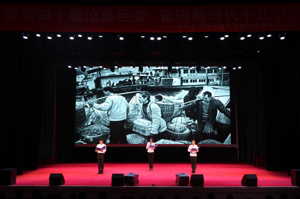 为庆祝改革开放四十周年,讴歌改革开放的辉煌成就,传承和弘扬改革开放的时代精神,12月20日晚,人文社会科学学院和校团委在科艺苑共同举办了以“讴歌四十载沧桑巨变,奋进新时代中北梦圆”为主题的庆祝改革开放四十周年文化展演活动。校党委书记李忠人、校党委副书记薛智以及各职能部门、各学院领导同现场的700余名师生代表共同观看了文化展演。