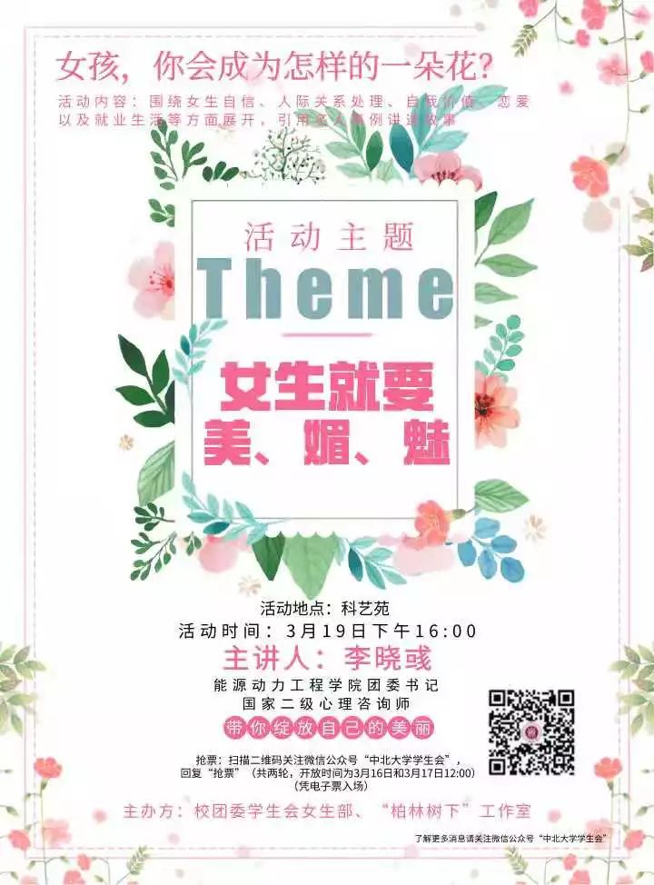 围绕女生自信、人际关系处理、自我价值、恋爱以及未来就业生活等方面展开,引用名人事例讲述故事