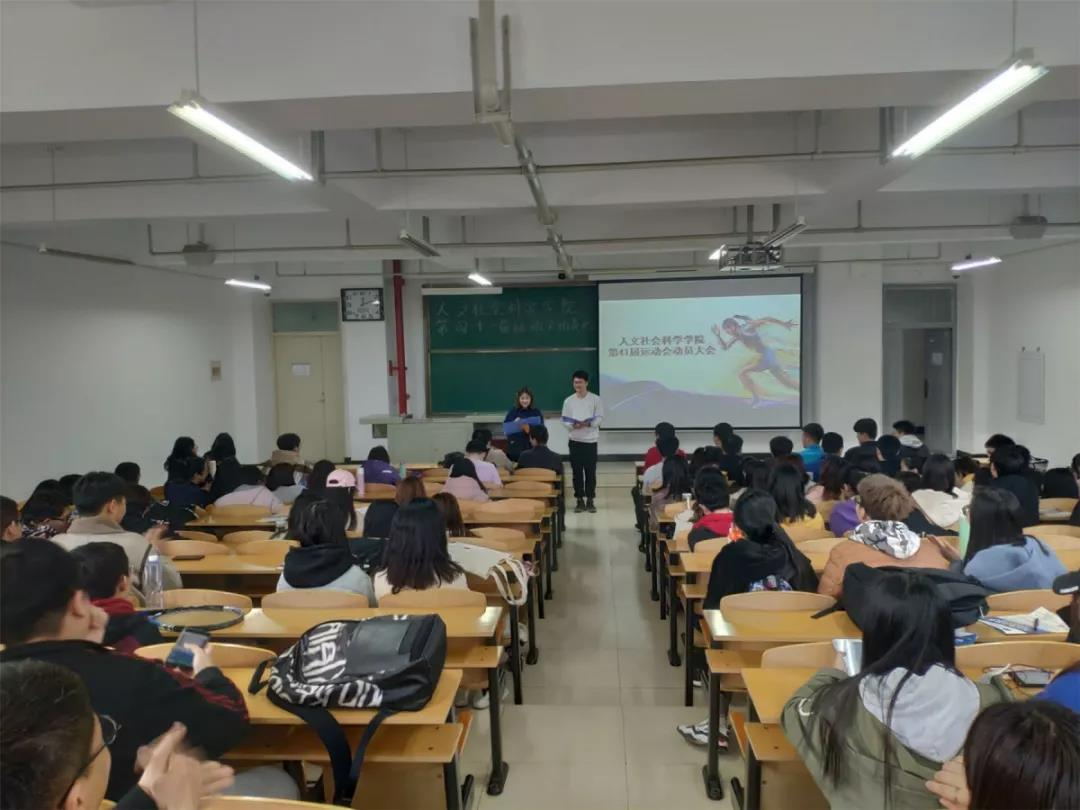 3月8日中午,由人文社会科学学院主办的第四十一届运动会动员大会在15106教室举办,党委副书记王晓东、团委书记加俊和团委、学生会全体成员莅临动员会现场,我院本届运动会教练胡洋磊、杨靖宇以及上届表现优异的运动员们参加本次大会。
