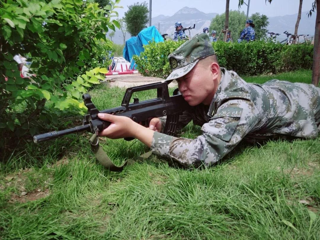 他不仅在军训时严于律己,在空暇时间不忘背书,他教导同学们认真参训,克服天气带来的影响,摆正自己的心态。军训是苦中作乐,在很多时候会感觉无聊枯燥,但依然要提高自己思想觉悟,打起精神,以最好的状态完成本次军训。