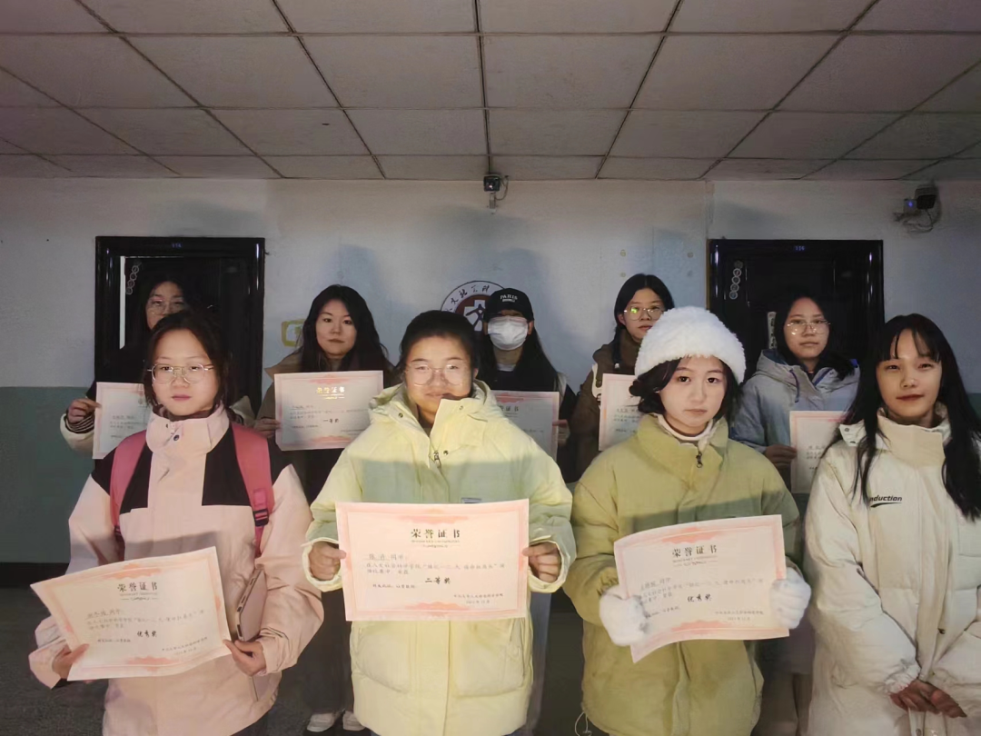 经过评委打分,工作人员核算,于婉姝同学获得一等奖,张卉和尹付梅同学获得二等奖,杨瑞,吴夏盈和吕美潞同学获得三等奖,谢冬梅,王璐瑶,王月和吉姝怡同学获得优秀奖。