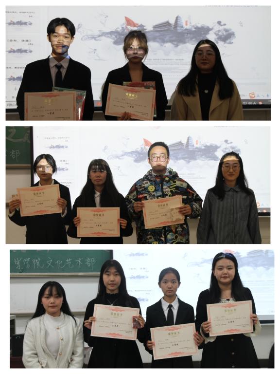 出席本次大赛的评委及嘉宾有:学生会主席团成员崔潇文,第一团总支书记姚连英,青志部部长闫欣,社团管理部部长孙梦瑶,文化艺术部部长王丰玉。