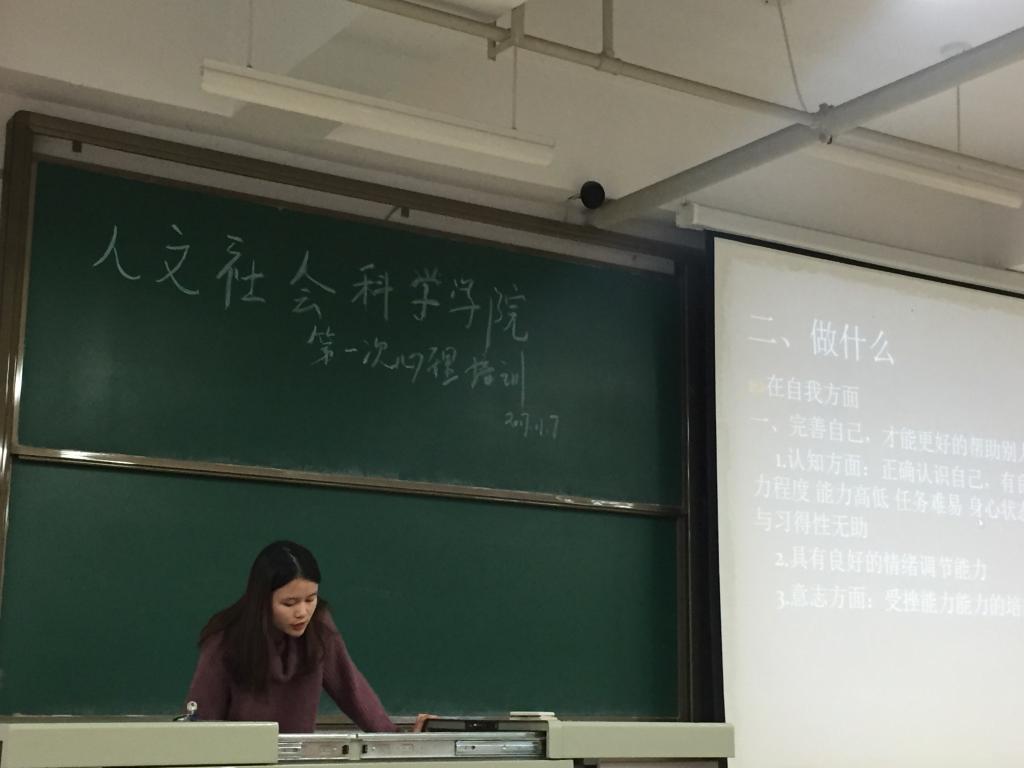 11月7日下午4点,我院第一次心理委员培训会在15106教室举行。此次培训会由心理站站长张欣妮学姐做主讲人。