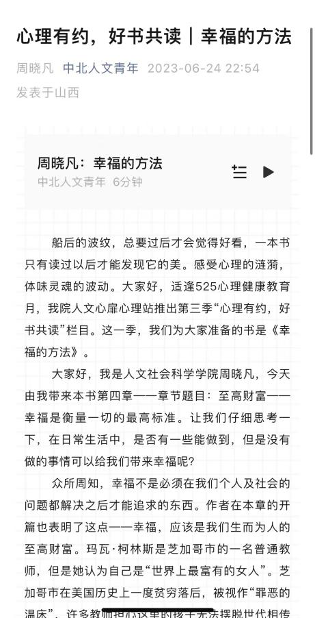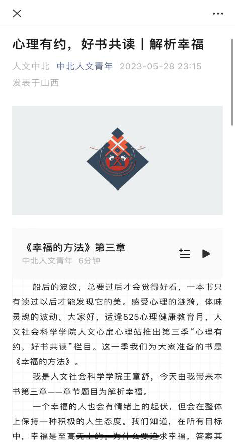 适逢525心理健康教育月,人文社会科学学院人文心扉心理站推出第三季“心理有约,好书共读”栏目。这一季我们为大家准备的书是《幸福的方法》。