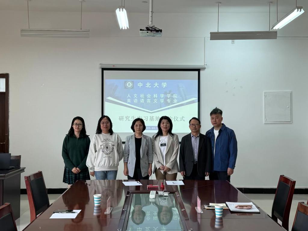 为促进研究生充分就业,落地人才培养战略,4月22日,我院院长芮燕萍、副院长廖高会、科研科科长彭兴旺一行三人前往太原工业学院外语部,签约中北大学人文社会科学学院英语语言文学专业研究生实习基地,太原工业学院外语部主任郭增卫、副主任张晓玲、办公室主任王瑞雪参加了签约仪式。