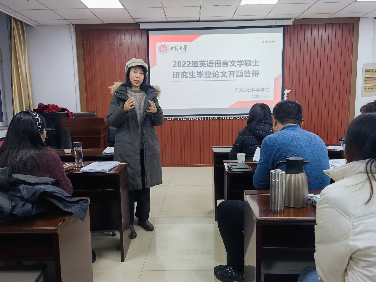 为全面落实提升研究生培养质量、强化过程管理的培养理念,结合研究生培养工作日程,2023年12月25日下午,我院举行了2022级硕士研究生学位论文开题答辩会议。我院英语语言文学专业研究生导师及2022级全体硕士研究生参会。本次答辩会特别邀请了山西大学冯薇教授担任评审组组长,2023级全体硕士研究生全程观摩学习。会议由刘陈艳老师主持。