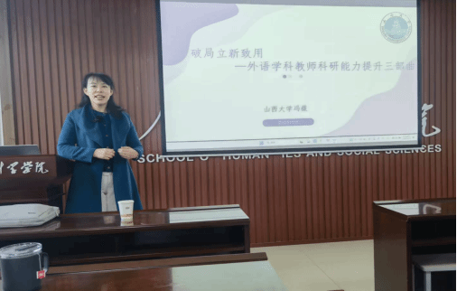 11月11日下午,我院邀请山西大学外国语学院冯薇教授带来以“外语学科教师科研能力提升三部曲”为主题的学术讲座。院长芮燕萍教授主持讲座,我院全体外语教师及在校研究生齐聚现场,共享学术智慧。