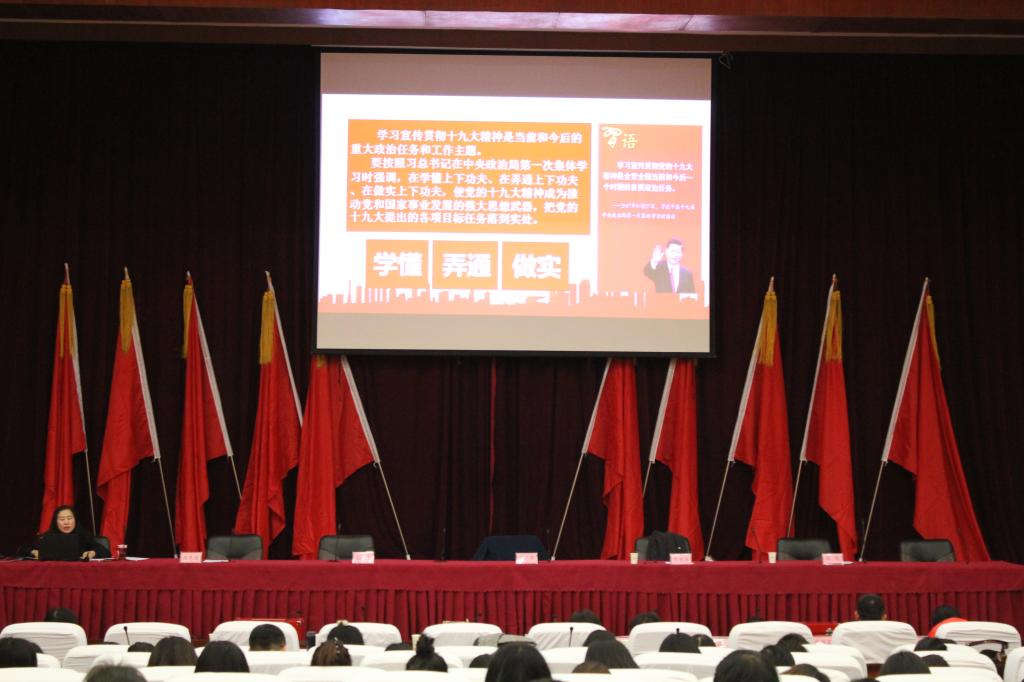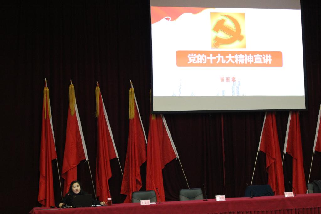 11月30日,人文社会科学学院党委组织了十九大精神宣讲会。院党委书记雷丽蓉面向学院160余名师生党员做十九大精神宣讲报告。院党委副书记王晓东主持会议。