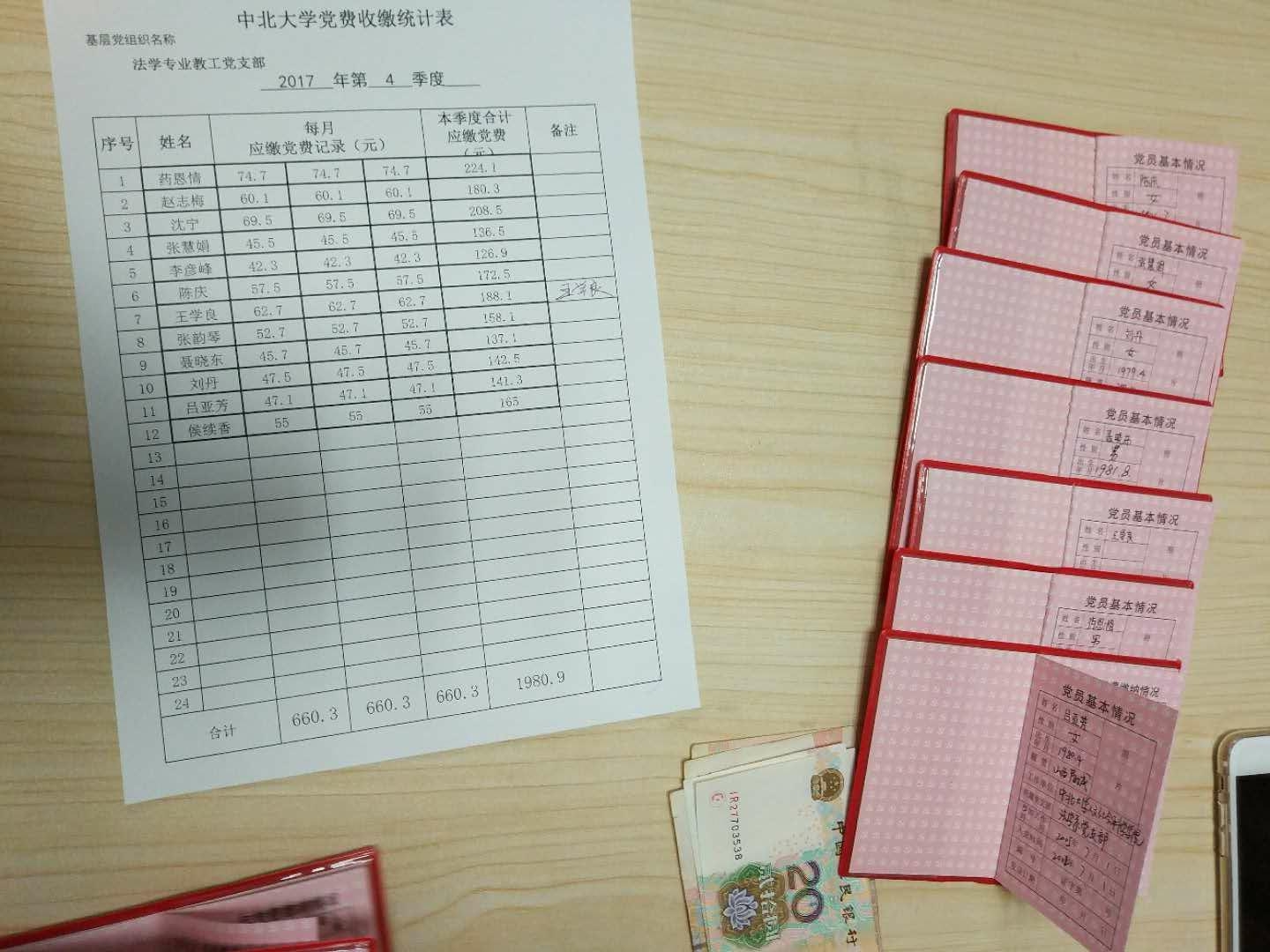按照《中北大学人文社会科学学院党支部主题党日活动指导书》,学院12月党日活动主题为“党员亲自向党支部缴纳党费”。12月18日至21日,学院十个教工党支部和学生党支部纷纷开展党员亲自向党支部缴纳党费活动。各党支部高度重视本项工作,指派支委在固定地点收缴党费,要求所有党员“自己交、按时交、交现金”,并在党委组织部发放的党员党费证上认真做好记录,引导党员从根本上认识到缴纳党费的神圣性,深刻认识党员的权利和义务以及党的纪律和规矩。