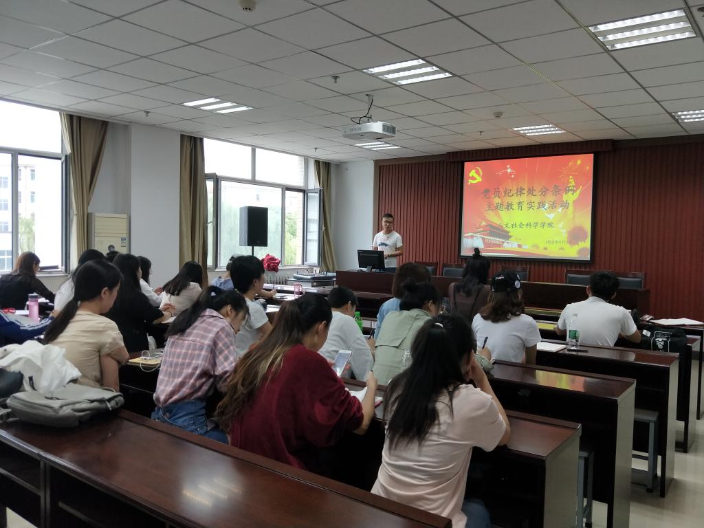 2018年9月2日,人文社会科学学院思政专业研究生党支部与英语专业研究生党支部在院楼502会议室召开了新《中国共产党纪律处分条例支部主题教育实践活动。思政及英语专业研究生党支部的在校党员参加了此次活动。活动由英语专业研究生党支部魏江帅同志主持。