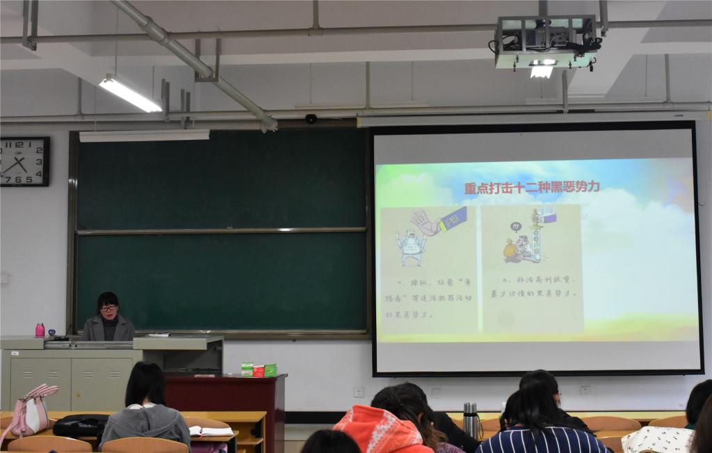 常雪老师就什么是“黑”、什么是“恶”的问题作为引导,解释了“黑”就是黑社会性质组织,“恶”就是恶势力犯罪组织,加深了同学们对“扫黑除恶”的认识。她以“校园贷”为例,详细介绍了非法“校园贷”的类型以及其如何运作推广。校园是扫黑除恶斗争的重要战场,近年来频频发生的校园欺凌事件、校园贷事件以及学生干部“官僚化”事件等都给受害者带来了严重的身心伤害,加强学校的“扫黑除恶”刻不容缓。常雪老师表示大学生应树立正确的价值观与人生观、世界观,永葆社会主义情怀,把学习放在首位,加强法制观念意识,勇于担当社会责任。
