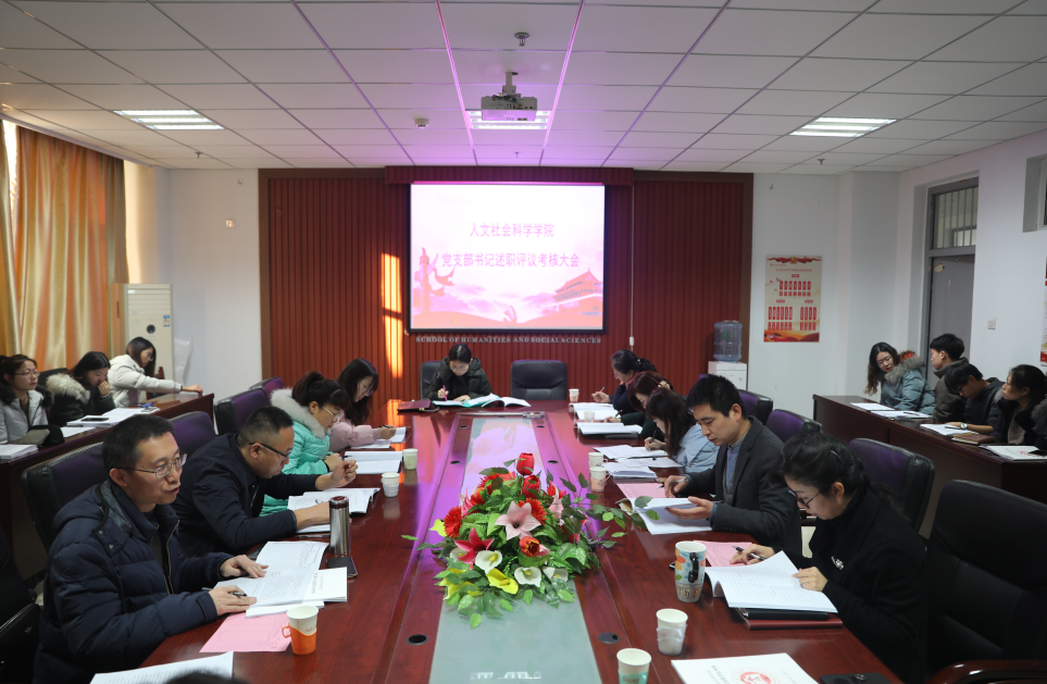 为切实推进全面从严治党向基层延伸,扎实推进学院“三基建设”,根据学校要求,人文社会科学学院党委于2019年1月4日上午在学院六层会议室组织2018年度党支部书记述职评议考核大会。学院党委委员、各党支部书记、支委、党小组长参加会议。