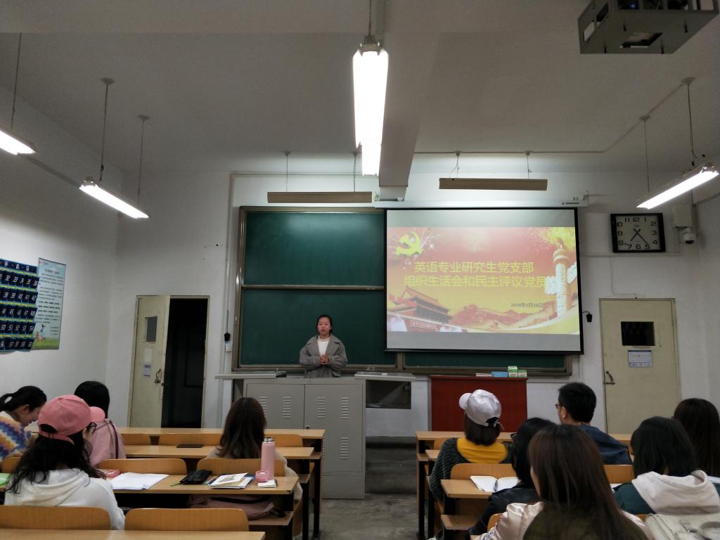 2019年3月28日,人文社会科学学院英语专业研究生党支部在13204教室开展2018年专题组织生活会和民主评议党员工作。会议由英语专业研究生党支部马玲君同志主持,支部全体党员参会。