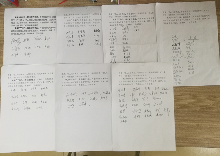 9月20日至25日,按照院党委统一部署,学院七个教工党支部和学生党支部纷纷开展主题党日活动。各党支部组织全体党员认真学习、领会院党委统一制发的《“不忘初心、牢记使命”主题教育党员承诺书》的具体内容和标准要求。每一位师生党员都在承诺书上庄严地签上自己的名字。同时各党支部还要求党员们认真践行诺言,在参与党组织活动和日常工作、学习、生活中主动佩戴党徽,亮明党员身份,接受群众监督,将庄严承诺晒出来,党员形象树起来,充分发挥师生党员在学院教学科研、学生工作、学风建设等领域中的先锋模范带头作用。师生党员的承诺践诺的具体情况,将在“不忘初心、牢记使命”主题组织生活会和民主评议党员工作中进行具体评价和考核。